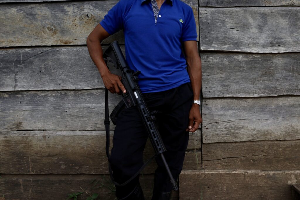“Estos tiros los hemos comprado con sudor, con el esfuerzo de cada familia. Cada uno pone una cantidad, un aporte, y así vamos comprando munición o armas nuevas para defendernos”, dice Jaguar. Cada caja de munición cuesta unos 30 dólares, lo equivalente a una semana de trabajo en el campo de una familia.