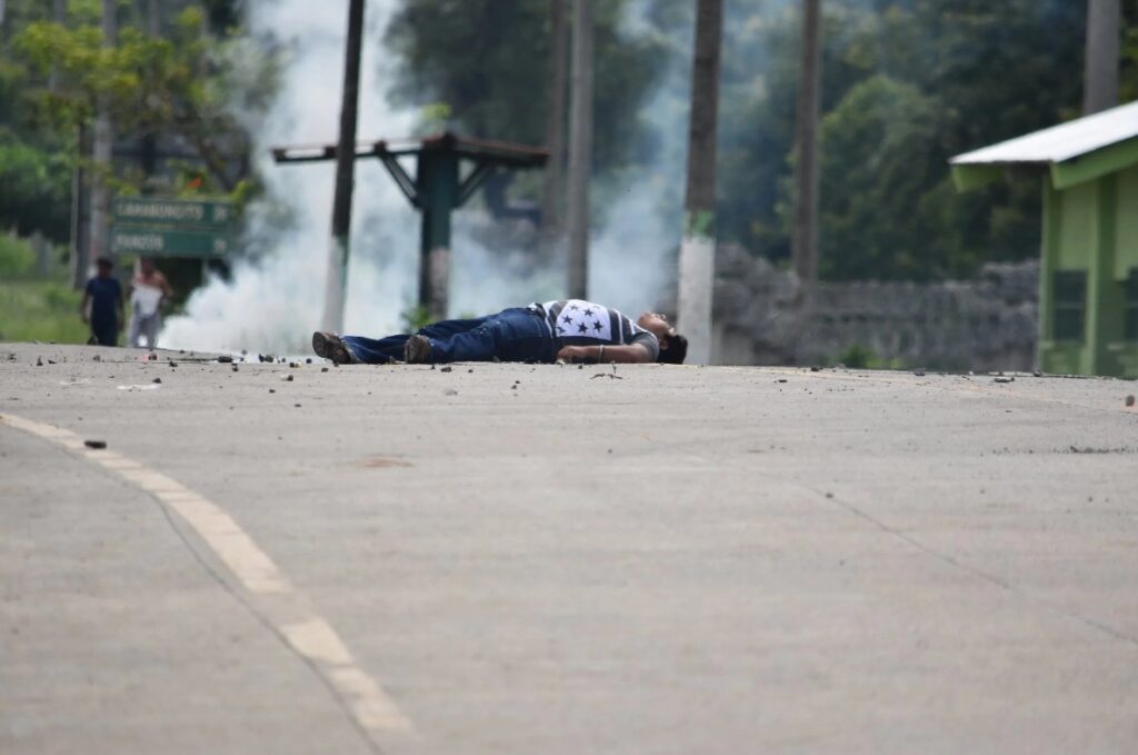 El 23 de octubre, cerca del mediodía, los q’eqchi’ en resistencia recibieron una alerta: un enorme convoy de carros militares iba cruzando a toda velocidad el puente Río Dulce, a unos 50 minutos de distancia del bloqueo. Luego, recibieron otra alerta: los pescadores habían visto varias lanchas “piraña”, unidades acuáticas que usan los militares para perseguir narcotraficantes en la zona.