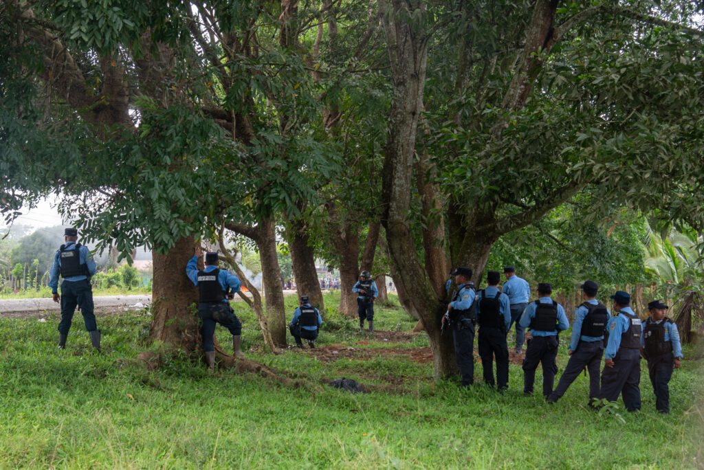 “Háganse para atrás”, nos dice un policía, mientras los encapuchados nos cortan el paso y amenazan con quebrar los parabrisas. Minutos después, pasadas las dos de la tarde, los ganaderos queman neumáticos sobre la carretera y empieza otra vez la balacera. Un herido: esta vez al lado de los ganaderos. Más tarde, un video que circularía en medios hondureños mostraría la pierna baleada de la víctima, mientras sus compañeros lo arrastraban para auxiliarlo.
