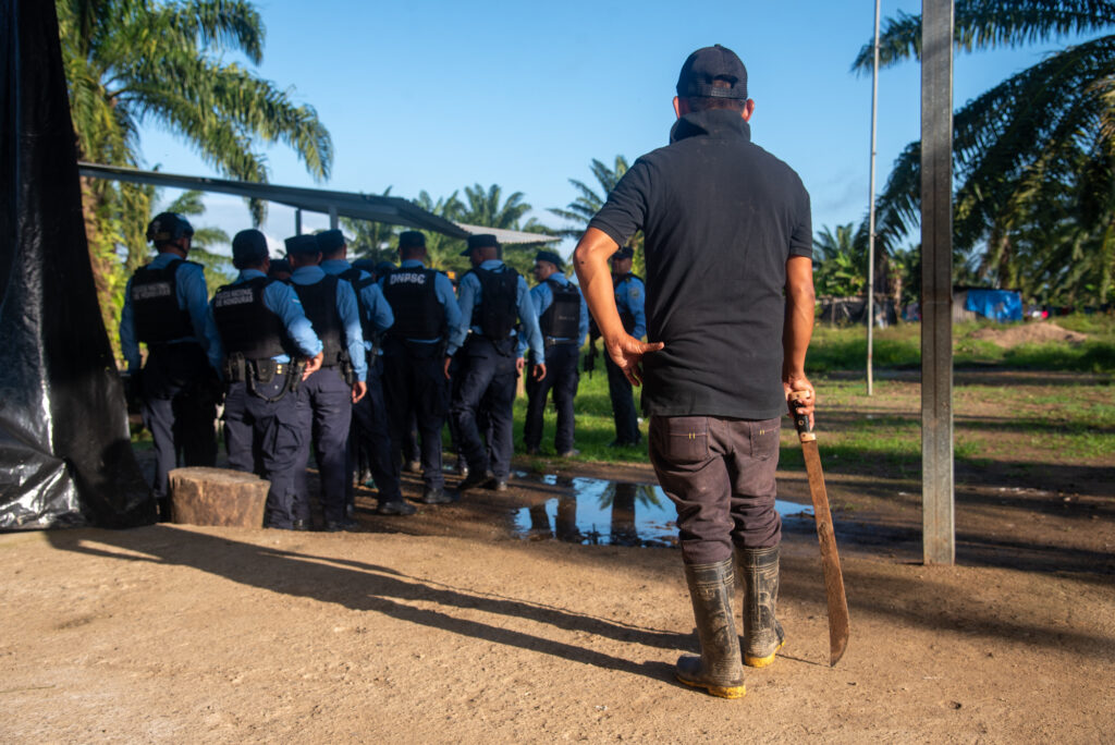 En noviembre de 2022, cuatro meses antes de que Lizama saliera de la cárcel, los agentes de seguridad privada de Dinant, que durante años fueron oficialmente desarmados y sometidos a capacitaciones en materia de derechos humanos con una publicidad agresiva, patrullaron, abiertamente armados, con militares otra vez. Ese mismo mes se declaró un estado de emergencia que desplegó miles de policías y militares en una lucha expandida contra grupos criminales, pero a finales de diciembre se desató otra ola de asesinatos de defensores de tierra y el agua en el Aguán que sigue hasta hoy. Desde entonces, los familiares de las víctimas no denuncian por miedo a represalias.