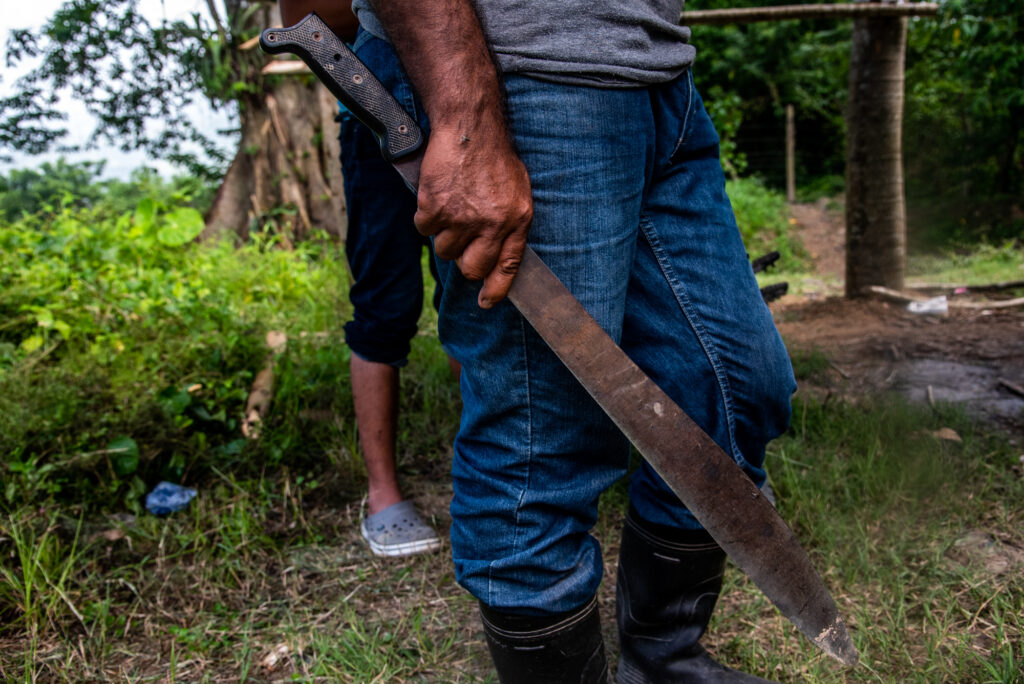 La calma de los policías que nos acompañan —“son pleitos entre campesinos”, dice uno de ellos, “no intervenimos en eso”—contrasta con dos de los guardias de vigilancia que lograron escapar y todavía tiemblan. “Nos cubrimos ahí (en la mata). Y ellos tirando, tirando, tirando, tirando, descargándolas”, cuenta uno de ellos.. “Cuando corrimos, un compañero se quedó en una mata… le agarró los nervios”.