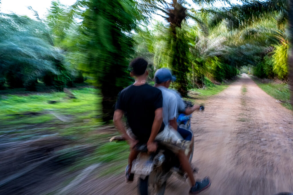 La primera ráfaga de tiros cayó sobre la finca al amanecer del 27 de enero de 2025. La guardia nocturna acababa de terminar y los vigilantes de la cooperativa Tranvío, que volvían a sus casas, se arrastraron por el laberinto verde de palmeras africanas para escapar de los disparos de un pelotón de entre 30 y 50 sicarios que portaban chalecos negros y rifles AR-15, AK-47, escopetas automáticas y mini-Uzi.