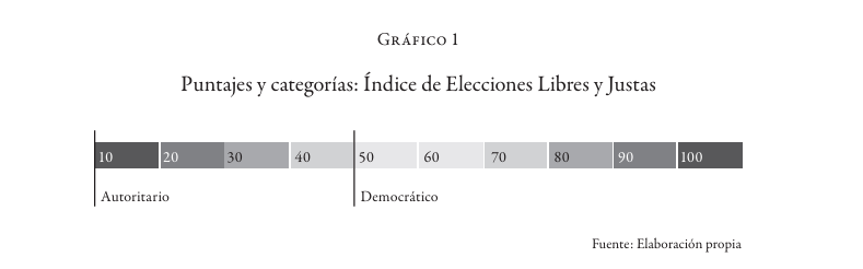 Una elección, para ser democrática, debe ser auténtica, libre y justa. Este índice evalúa el cumplimiento de esto en el sentido más amplio. Busca que todos los ciudadanos aparezcan en el registro electoral; que tengan el mismo acceso físico a un centro de votación; que puedan conocer y tener información de todas las candidaturas; que exista seguridad física para emitir su sufragio; que no sean intimidados ni discriminados; que tengan libertad para hacer campaña; que las autoridades traten a todos los competidores por igual; que los funcionarios electorales sean profesionales; que ninguna candidatura sea excluida indebidamente, que su voto sea libre y secreto.