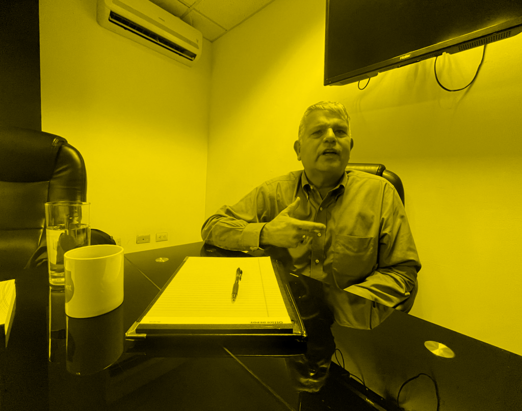 Esta entrevista se celebró en un espacio de oficinas rentadas de la capital, el jueves 30 de noviembre, el día en el que Bukele presentó una licencia para dejar de ejercer como presidente (aunque conserva privilegios que le da el cargo) para lanzarse de lleno a la campaña. La oficina estaba reservada a nombre de Andy Failer, presidente del partido Nuestro Tiempo.