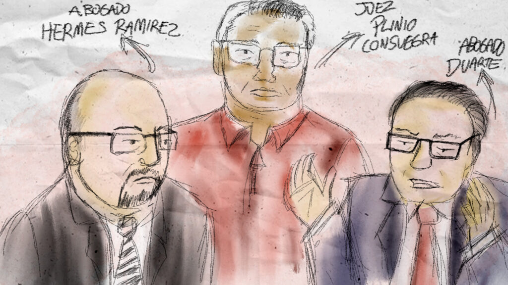 Hay 20 personas apiñadas aquí, esperando el veredicto del juez Plinio Consuegra, un juez liberal con 19 años de carrera y una candidatura desestimada para fiscal general en 2023 porque, según el acta de eliminación de su candidatura, había enfrentado un proceso judicial por violencia doméstica.