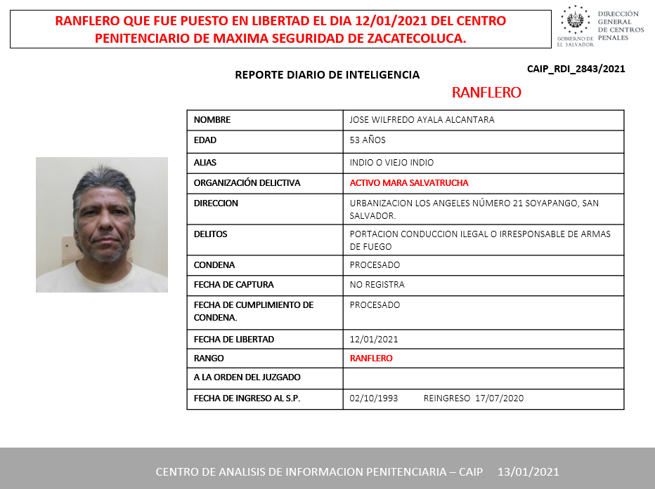 La última vez que Indio salió de esa cárcel fue el 12 de enero de 2021. Nuevamente el Juzgado Segundo de Paz de Nueva Concepción sustituyó la detención provisional en su caso por una “caución económica”. Pese a su perfil, no le colocaron un brazalete electrónico, a pesar de que tenía otros procesos pendientes, de acuerdo con una investigación de La Prensa Gráfica.