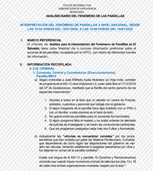 Estas directrices, consignadas en un análisis de inteligencia policial, fechado en enero de 2020, reiteran cuán profundos eran los acuerdos del gobierno con las pandillas y el conocimiento que tuvo en todo momento el gabinete de seguridad, que se suponía las estaba combatiendo con el PCT.