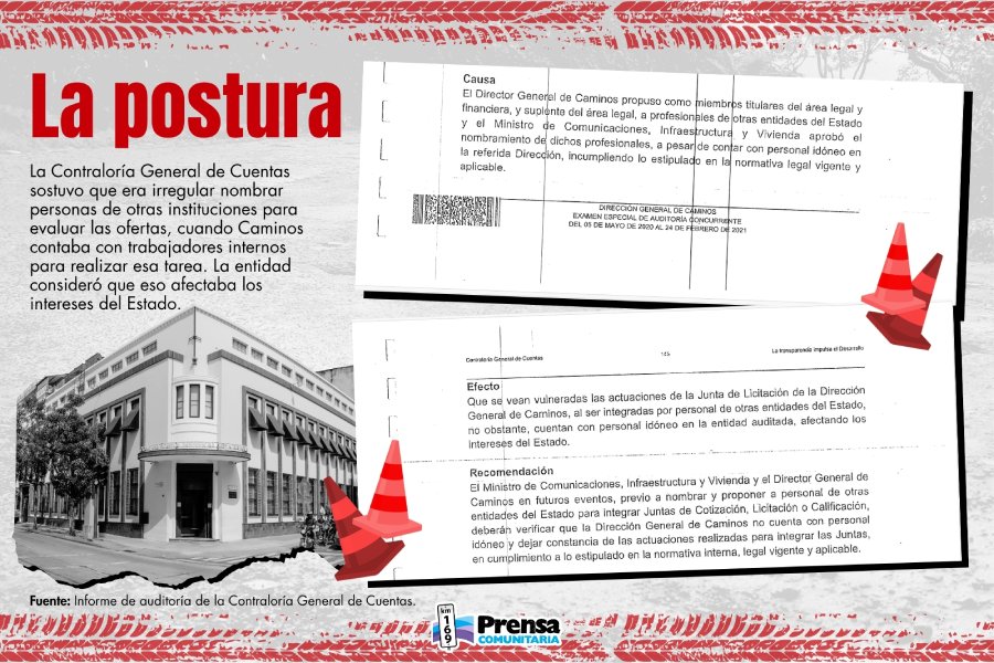 Pero había más cosas extrañas detrás del evento. ¿Por qué personas del Ministerio de Desarrollo Social estaban en la Dirección General de Caminos? ¿Por qué integraban la junta? ¿Por qué esta entidad mercantil ganó el concurso a pesar de que su papelería estaba llena de deficiencias?