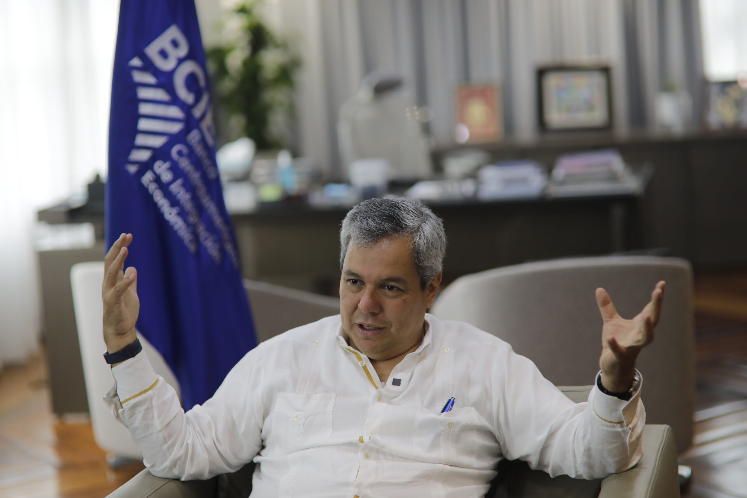 Dante Mossi en las oficinas del Banco Centroamericano de Integración Económica en Tegucigalpa, Honduras. Foto de Jorge Cabrera, Contracorriente.