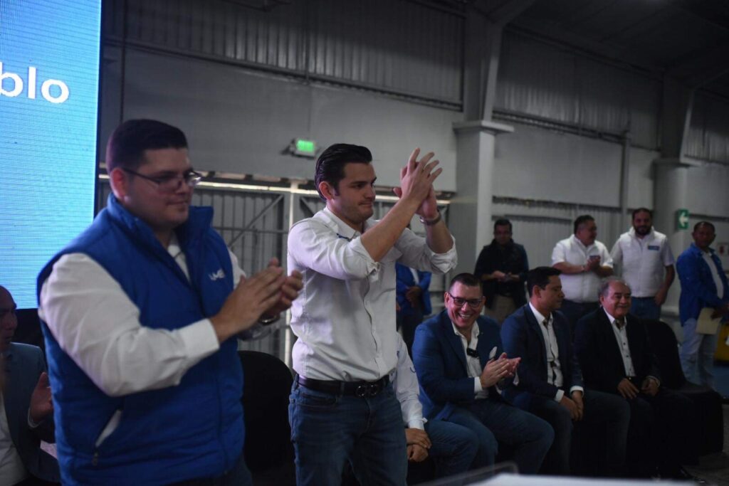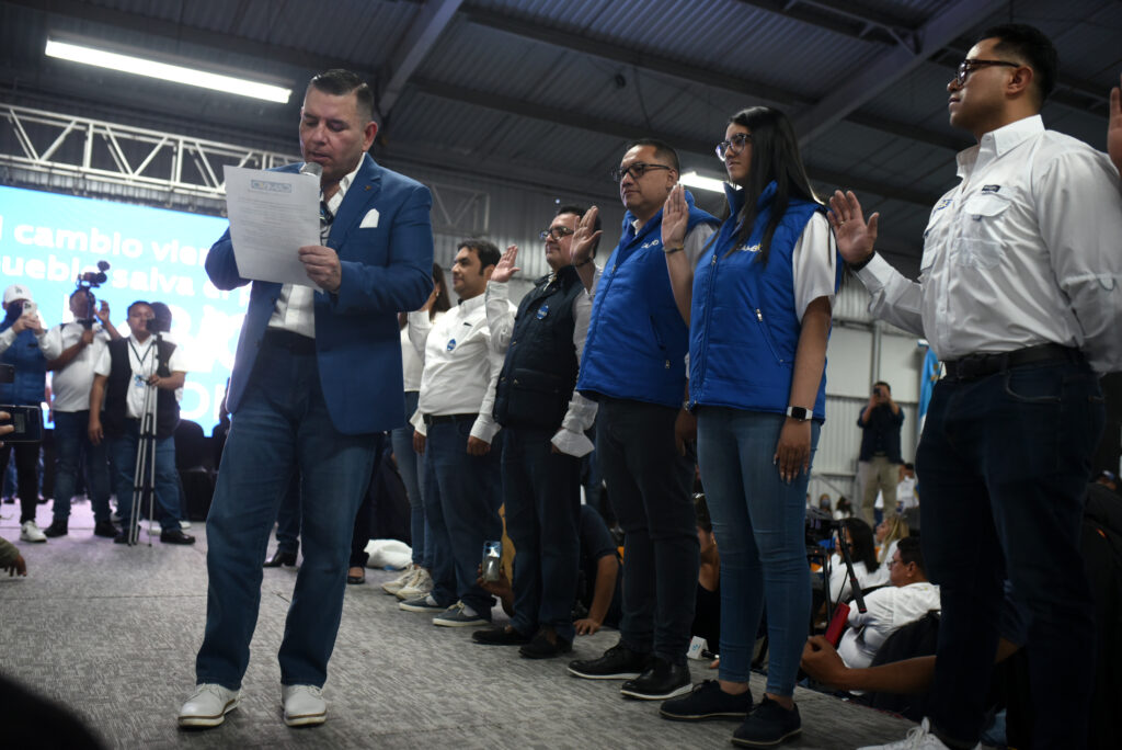 Manuel Baldizón juramenta a los candidatos a diputados por el partido Cambio durante una asamblea el 5 de febrero de 2023 en la Ciudad de Guatemala. Foto/Edwin Bercián