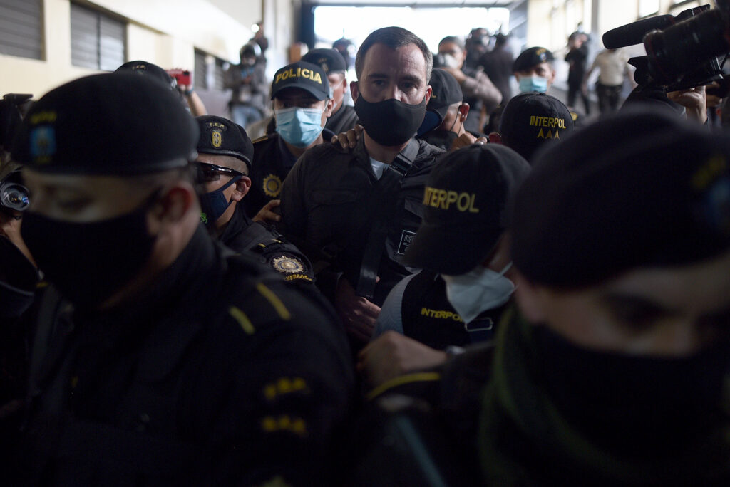 El exministro de Comunicaciones, Alejandro Sinibaldi, es ingresado Torre de Tribunales por agentes de la Policía Nacional Civil, luego de ser capturado el 24 de agosto de 2020 sindicado de participar en la red de sobornos por el caso Odebrecht. Foto/Edwin Bercián