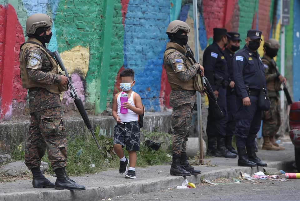 En el área metropolitana de San Salvador, en comunidades históricamente identificadas como territorios de pandillas, policías y soldados montaron cercos y retenes para vigilar la entrada y salida de los habitantes. Escenas similares se vivieron en Santa Ana y San Miguel. Las imágenes fueron noticia internacional.