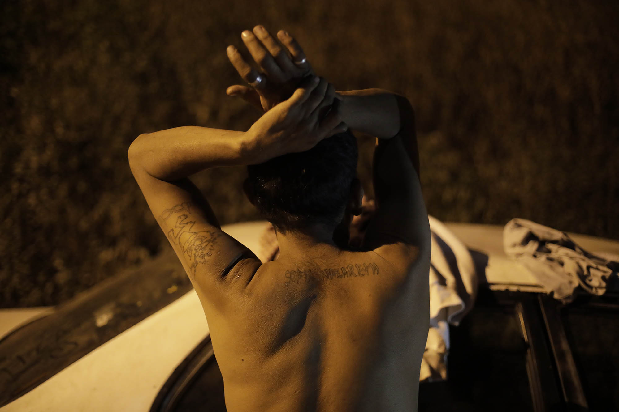 A los transeúntes se les retira sus camisetas para verificar que sus tatuajes no tengan nada que ver con mara y pandillas.Foto CC/Jorge Cabrera