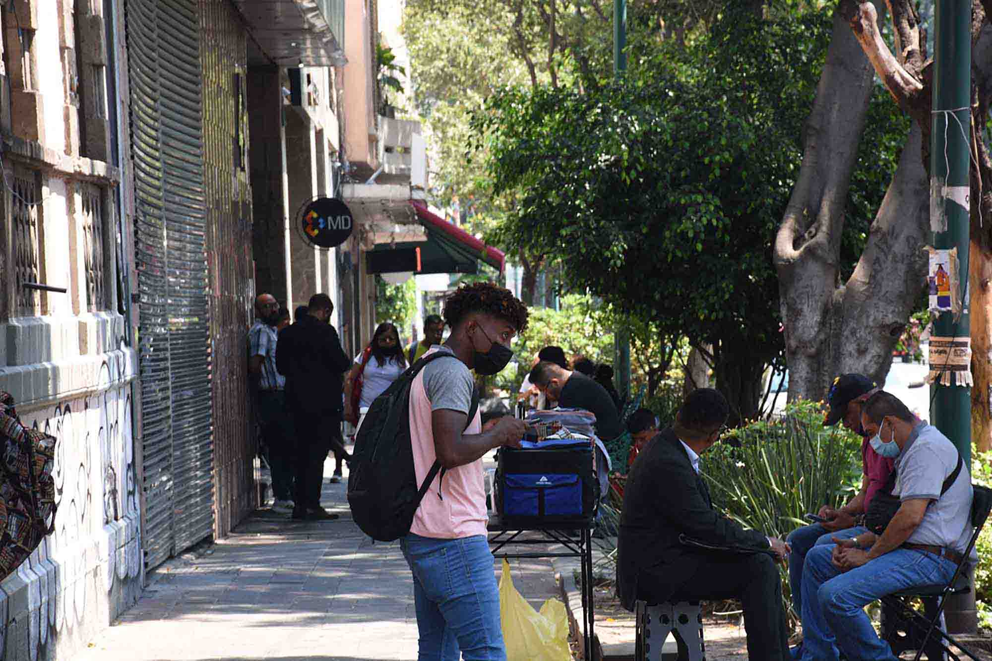 Personas en busca de refugio esperan afuera de las oficinas de la Comisión Mexicana de Ayuda a Refugiados (COMAR) en la Ciudad de México. Jorge Varela, 2022