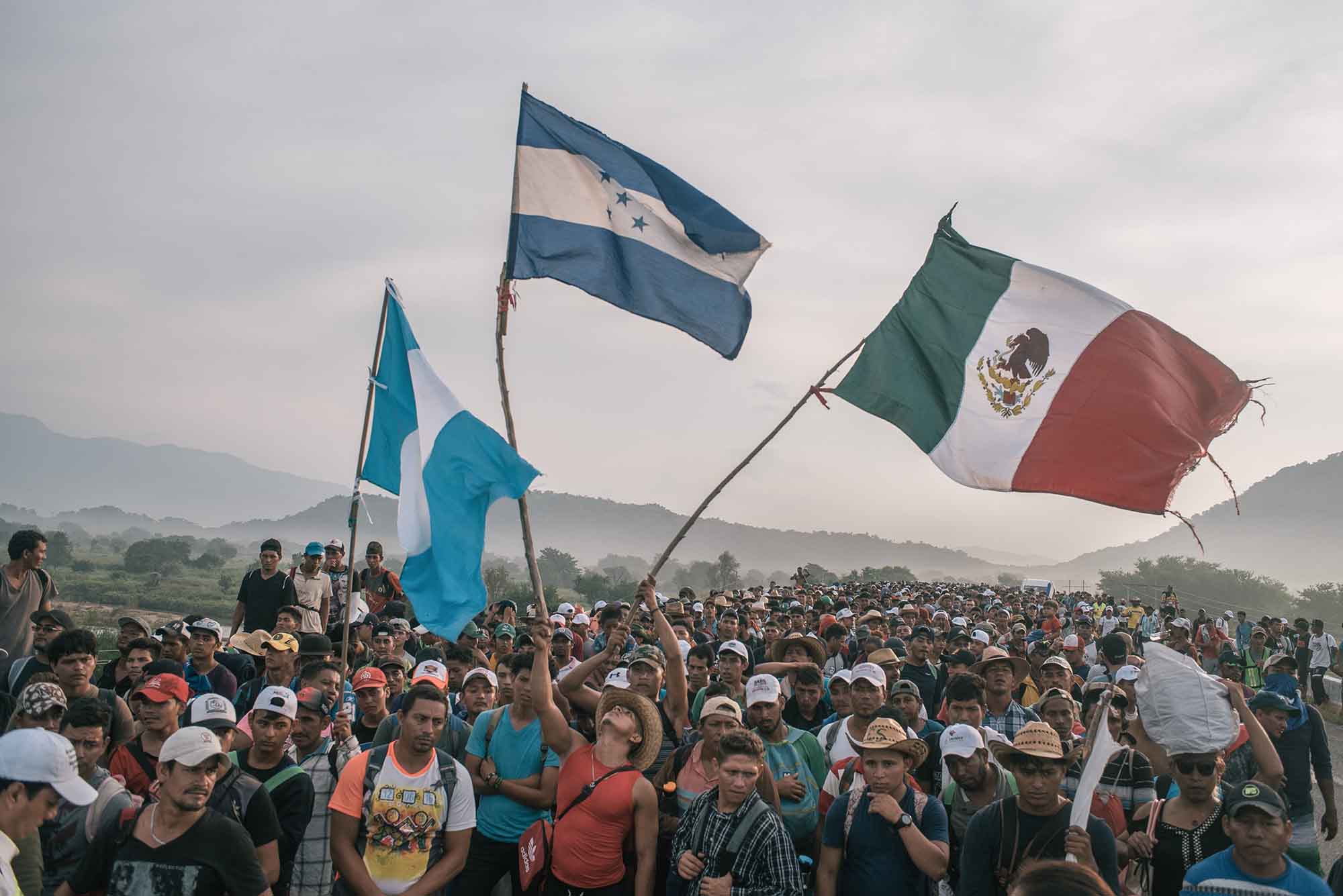 Integrantes de la caravana migrante del 2018 esperan durante un bloqueo en la carretera de Arriaga hacia San Pedro Tapanatepec, en la frontera entre Chiapas y Oaxaca en el sur de México. Luis Antonio Rojas, 2018