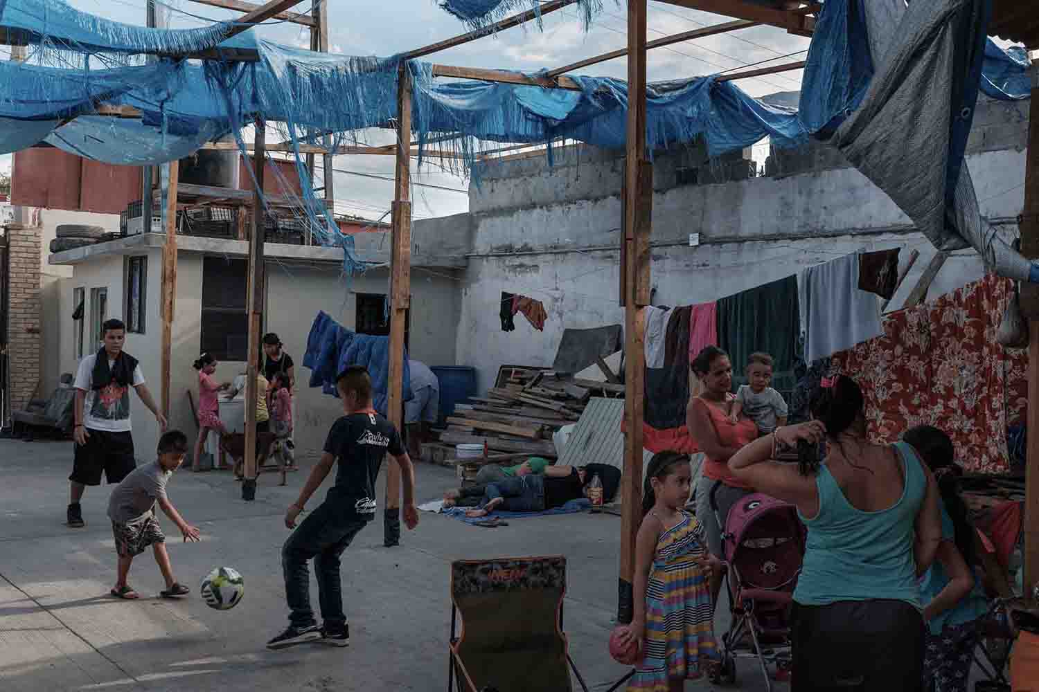 Migrantes pasan una tarde en la Casa del Migrante AMAR poco después de que la polémica política de inmigración de la era Donald Trump conocida como el programa «Permanecer en México» o «Remain in Mexico» fuera instaurada en Nuevo Laredo, Tamaulipas. Luis Antonio Rojas, 2019