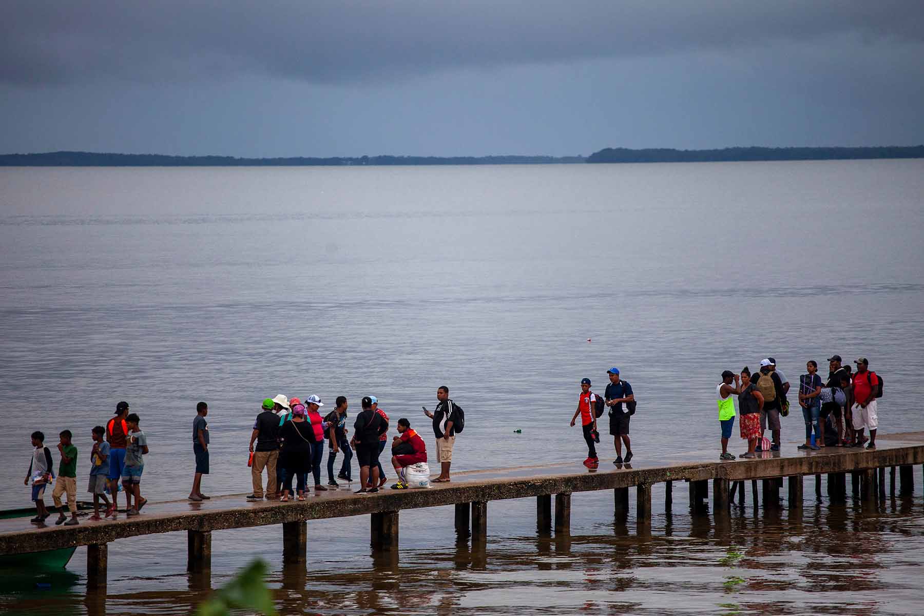 Muelle del barrio El Centro en Puerto Lempira, La Mosquitia. Un grupo de personas esperan lanchas para llegar a otras comunidades. Puerto Lempira, Gracias a Dios. Foto CC |/Fernando Destephen.