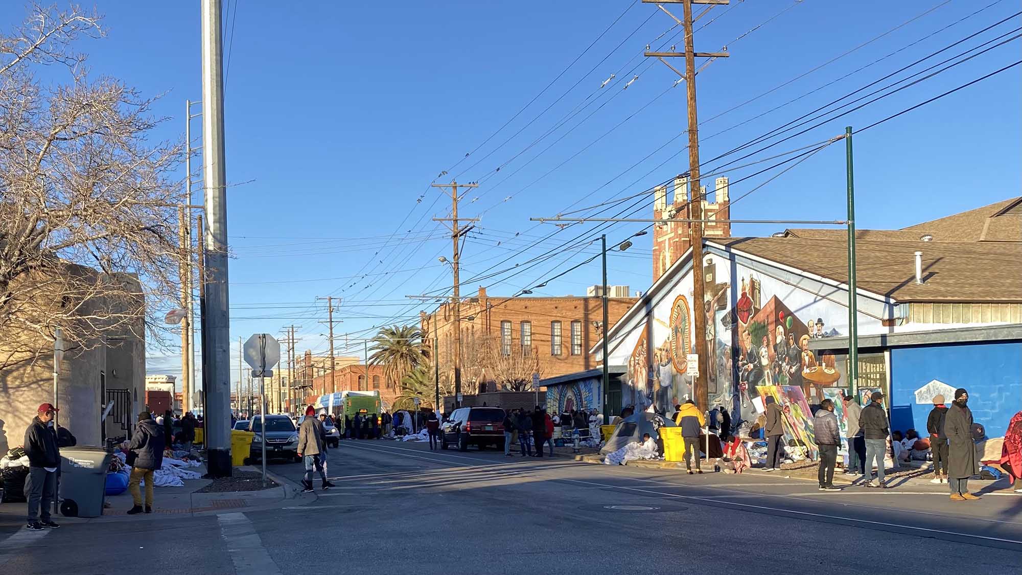 En diciembre, cientos de personas debieron dormir en las calles. El municipio de El Paso habilitó varios campamentos en el Centro, a pocos metros de la frontera, con ayuda de voluntarios de la Cruz Roja. Sin embargo, sus puertas estaban cerradas para los migrantes que entraron al país de forma irregular. Los que fueron rechazados por el municipio, debieron conformarse con lo que las organizaciones religiosas lograban conseguirles.