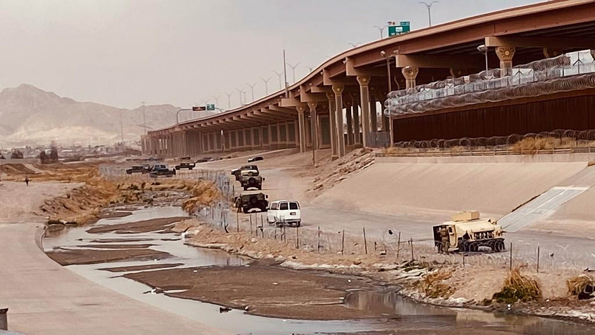 Mientras en Ciudad Juárez se persigue a los migrantes, en este sector del río Bravo se han militarizado 500 metros de la frontera para impedir el flujo de migrantes. Alambre de púas y vehículos militares y armados custodian el río por iniciativa del gobernador texano, el republicano Greg Abbott, quien se prepara de esta forma ante una posible derogación del Título 42.