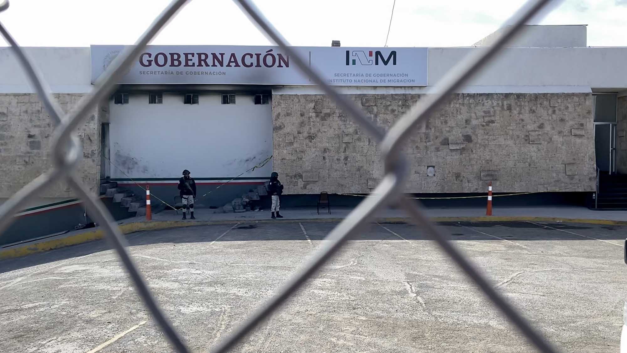 Fachada del Centro de Detención del INM un día después de la tragedia