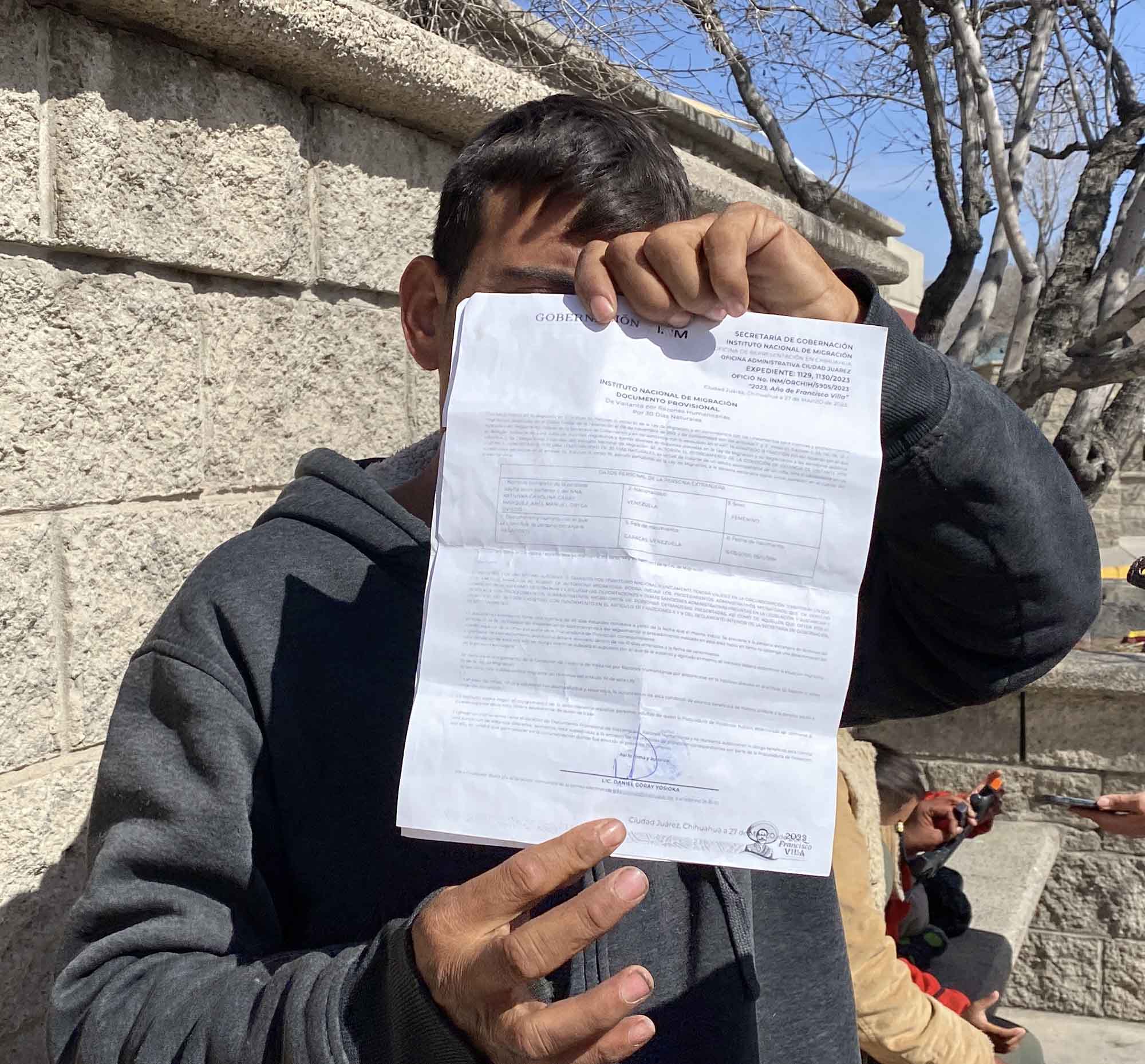 Abel Ortega muestra el documento que les hicieron firmar las autoridades del Instituto Nacional de Migración al momento de su liberación. En este les informaban que tenían un mes para dejar el país por sus propios medios o cuando los volvieran a encontrar, les arrestarían y deportarían hasta sus países de origen.