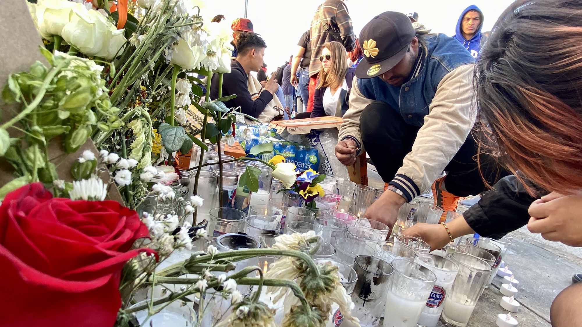 Afuera, en la calle, todavía huele a quemado, a cuerpos quemados. También hay indignación. Un centenar de migrantes, entre familiares, amigos conocidos o compañeros de viaje de las víctimas colocan velas, ofrendas florales, fotos, banderas  de sus países y carteles de apoyo. La odisea de 40 llegó hasta aquí, un complejo gubernamental contiguo al puente internacional Lerdo-Stanton, ubicado a escasos cien metros de distancia del río Bravo, límite fronterizo con Estados Unidos. Tan cerca y tan lejos del sueño americano.
