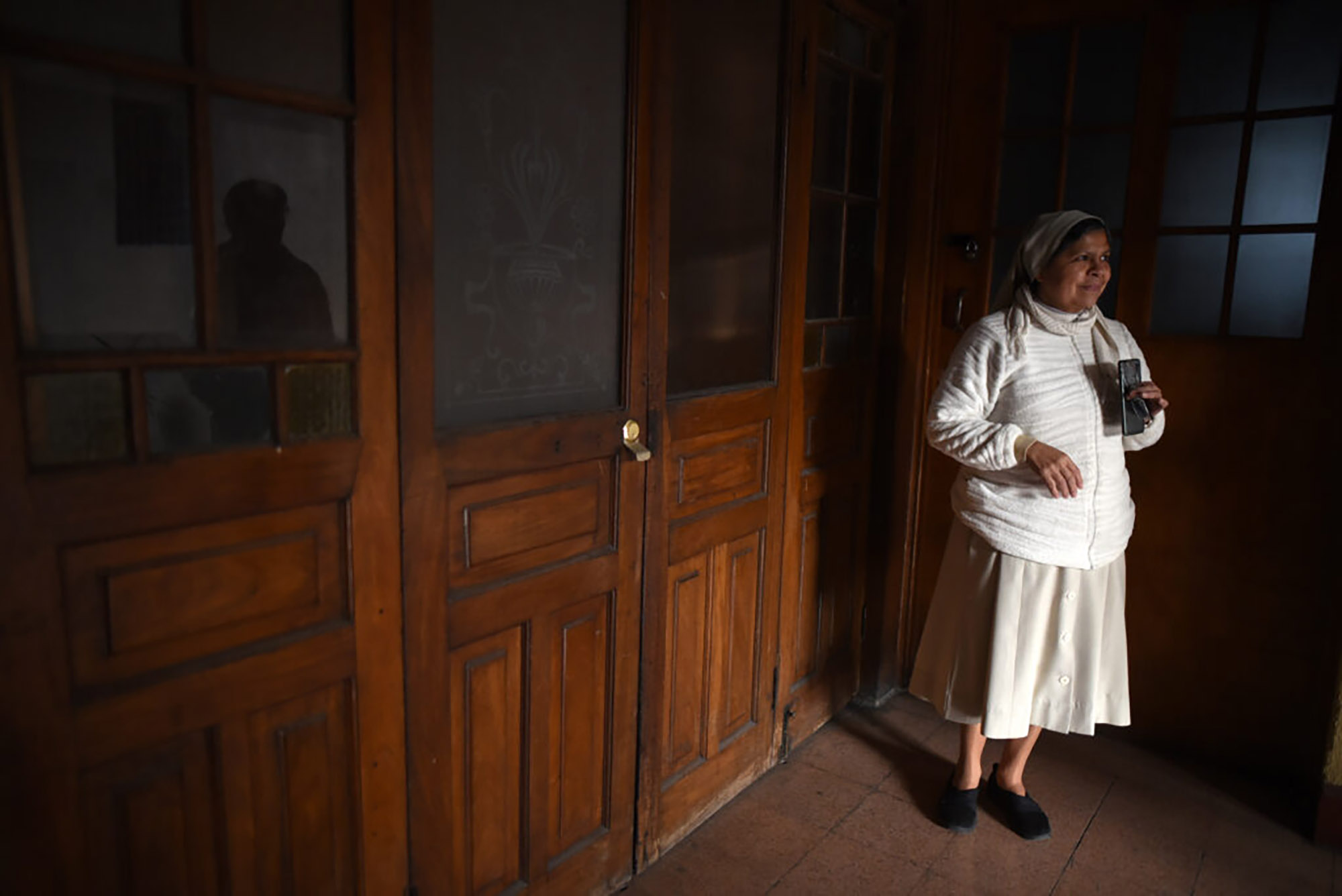 Sor Lidia Cruz, misionera en Guatemala y Directora de Casa Central, muestra los pasillos donde meses atrás fueron albergados decenas de familias migrantes provenientes de Venezuela, quienes se encontraban varados en el país en busca de una forma de sobrevivir y continuar su viaje hacia Estados Unidos. Fotografías: Edwin Bercián
