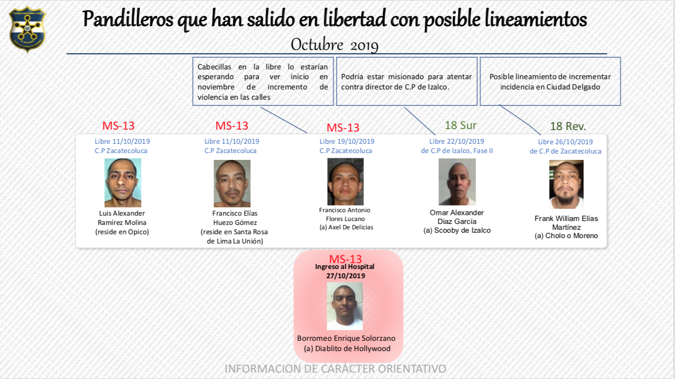 El «Análisis Diario del Fenómeno de las pandillas» realizado del 25 al 31 de octubre por el Sistema de Inteligencia Policial (SIPOL), en el marco de la salida de Diablito, recogía una güila confiscada en el penal de Ciudad Barrios que decía que «cabecillas tendrían planificada una mesa de dialogo con representantes del gobierno, entre los puntos a tratar estaría la reducción de homicidios y el tema de los enfrentamientos entre policías, militares y pandillas«.