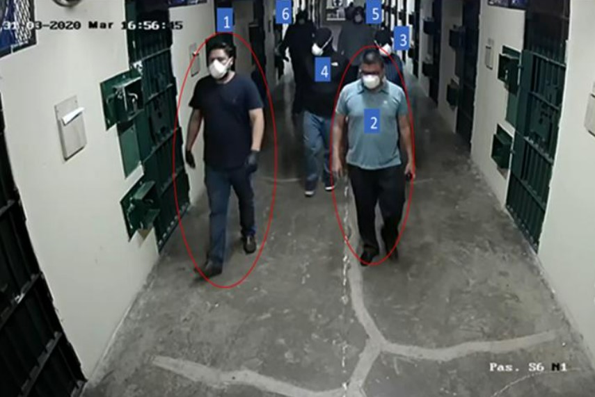 Captura de video del ingreso del director de Centros Penales al penal de máxima seguridad, el 31 de marzo de 2020, diez días después del inicio de la cuarentena nacional. Tomada de El Faro.
